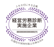 ※「職場環境改善宣言企業」、「経営労務診断実施企業」、「経営労務診断適合企業」の文字列を含む認証マーク及び「経営労務診断」の用語は、全国社会保険労務士会連合会の登録商標です。